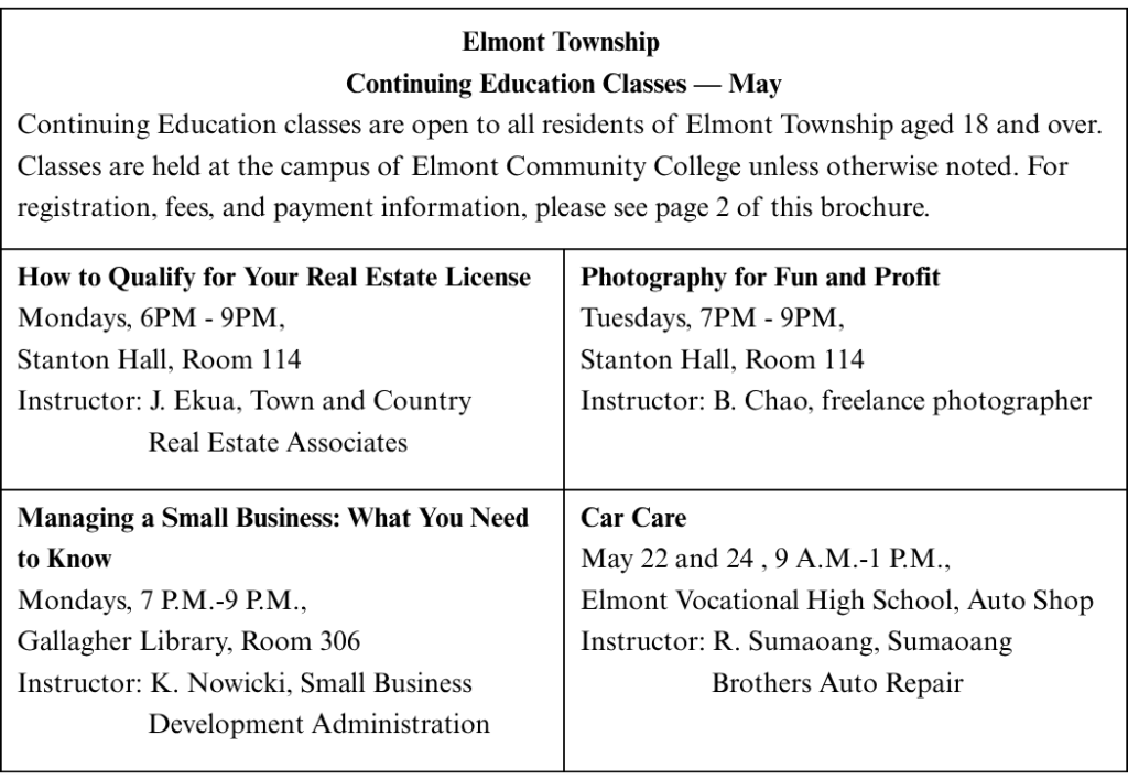 “…open to all residents of Elmont Township aged 18 and over.”