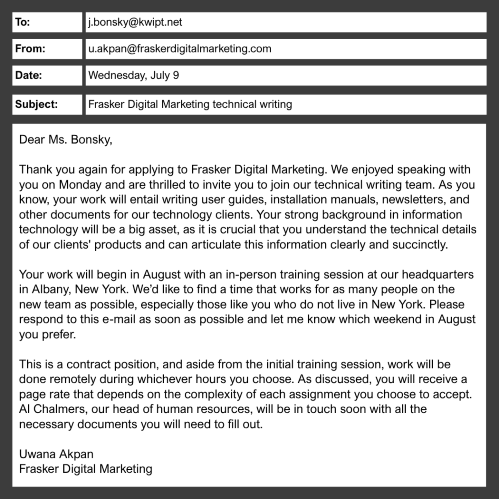 Giải thích: Mục đích email là mời Ms. Bonsky vào nhóm biên tập kỹ thuật.