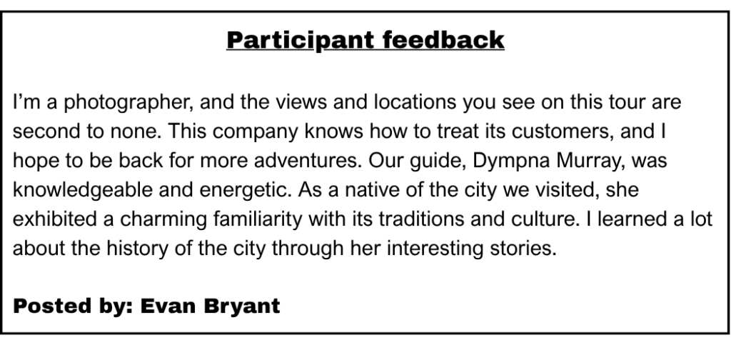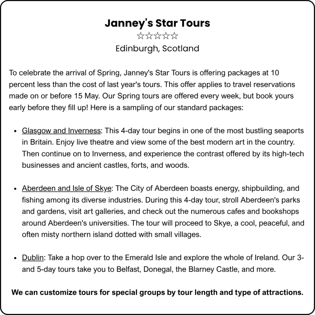 Dẫn chứng: Our Spring tours are offered every week…