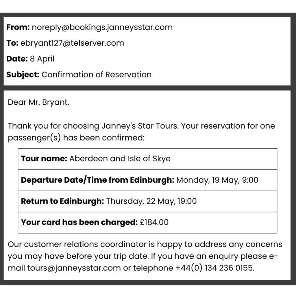 Dẫn chứng: please reply to this e-mail or call me… request more information…