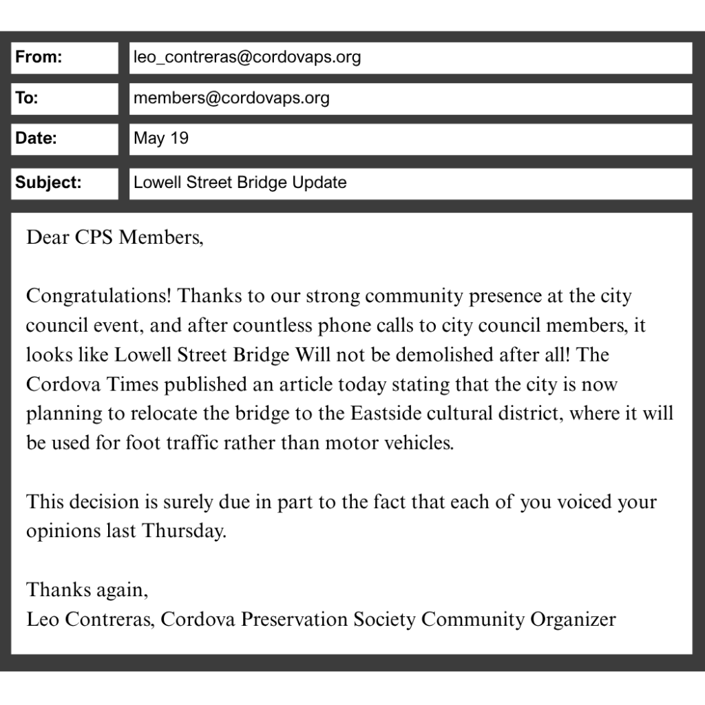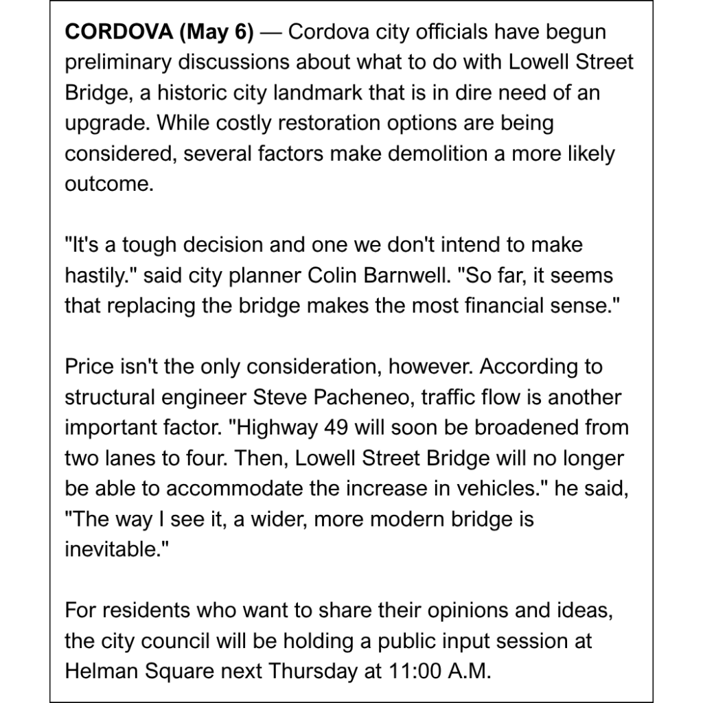Dẫn chứng: Thanks to our strong community presence… the city is now planning to relocate the bridge.