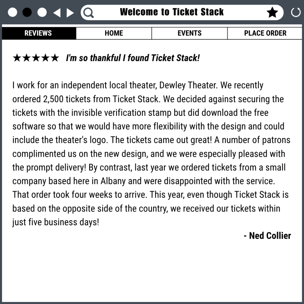 Ông Collier thích Ticket Stack vì giao hàng nhanh hơn công ty trước.