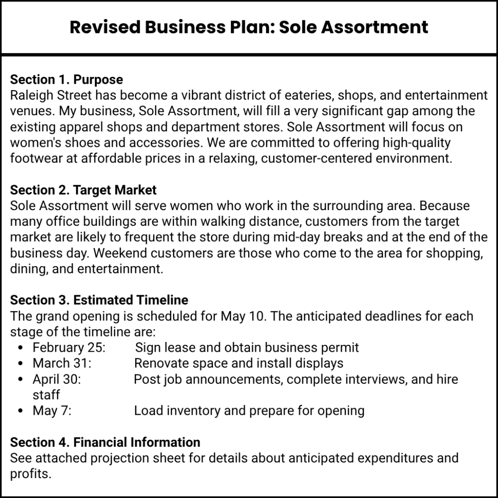 “I have reviewed your feedback and changed my business plan accordingly.”