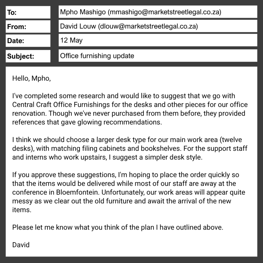 “For the support staff and interns who work upstairs, I suggest a simpler desk style.”