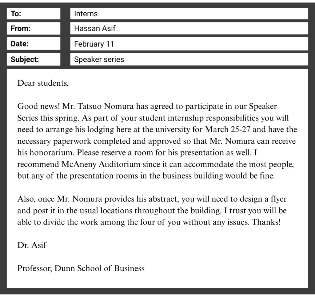 “I recommend McAneny Auditorium since it can accommodate the most people, but any of the presentation rooms in the business building would be fine.”