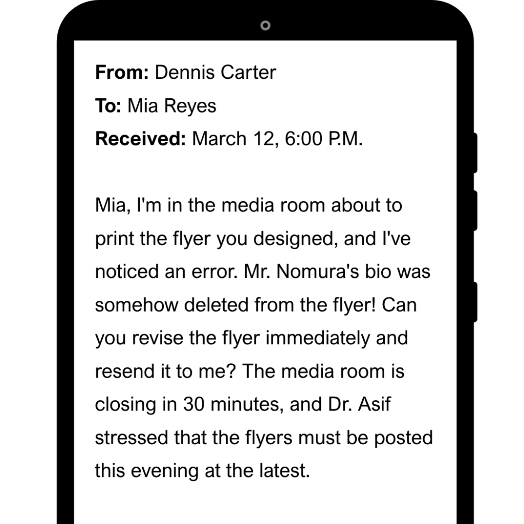 Mia Reyes là sinh viên tham gia nhóm lo công việc.
