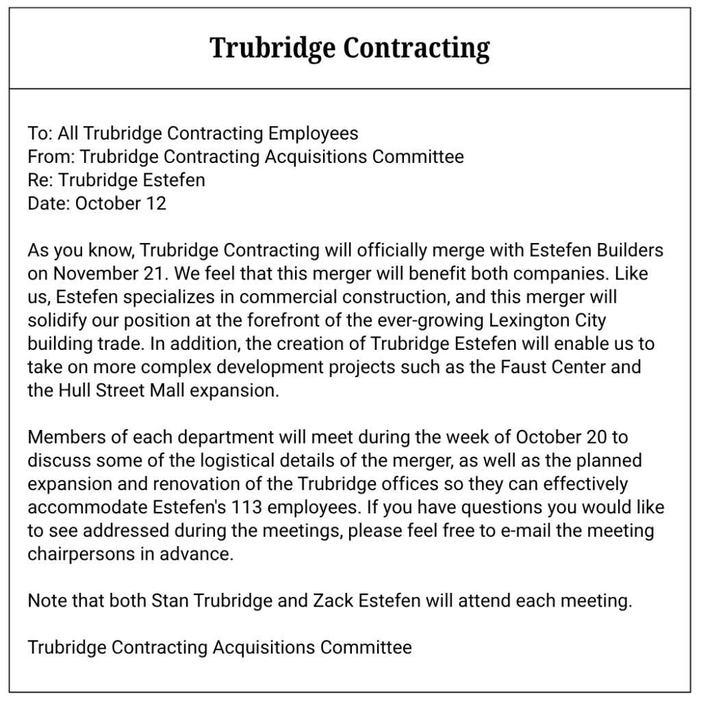 Nhân viên Estefen sẽ chuyển đến văn phòng Trubridge.