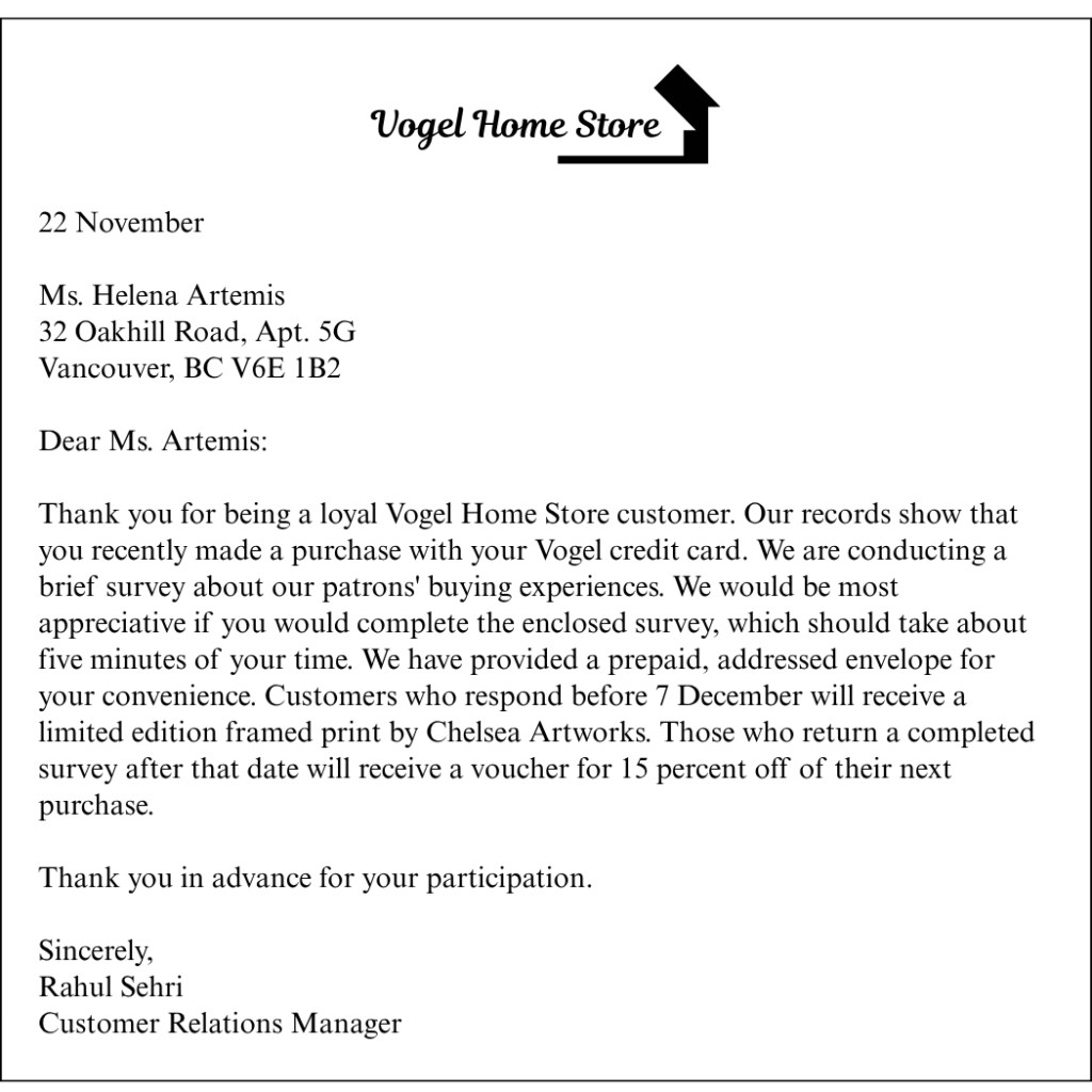 “Those who return a completed survey after that date will receive a voucher for 15 percent off of their next purchase.”