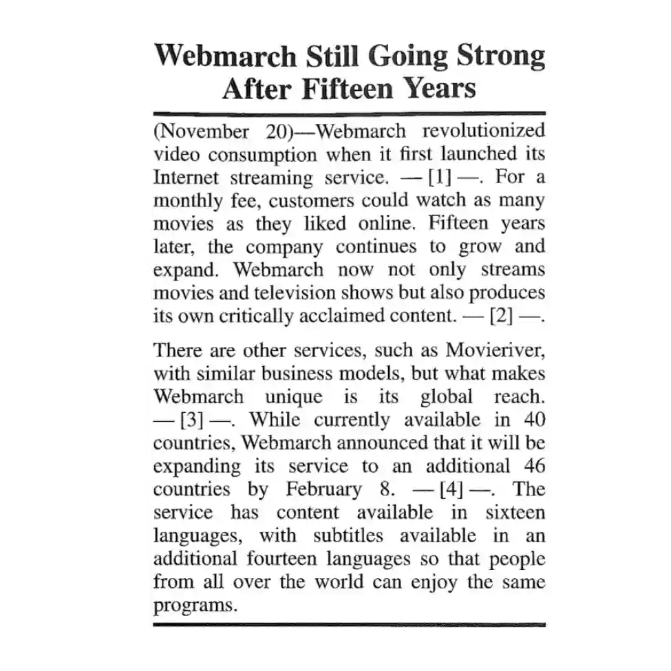 “Webmarch revolutionized video consumption…” → “It was an immediate success.”