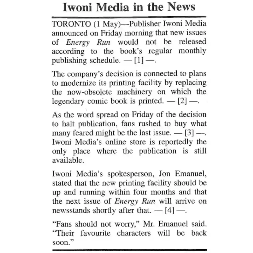 “…the next issue of Energy Run will arrive on newsstands…”